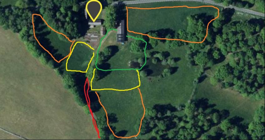 Börja med att på egen hand utan hästen, välj ut en plats ni kan vara på där du vet att hästen är så lugn som möjligt. Det kan vara inne i hästens hage, just utanför hagen, inne i boxen eller var som helst där hästen inte visar stresstecken eller visar så få stresstecken som möjligt.